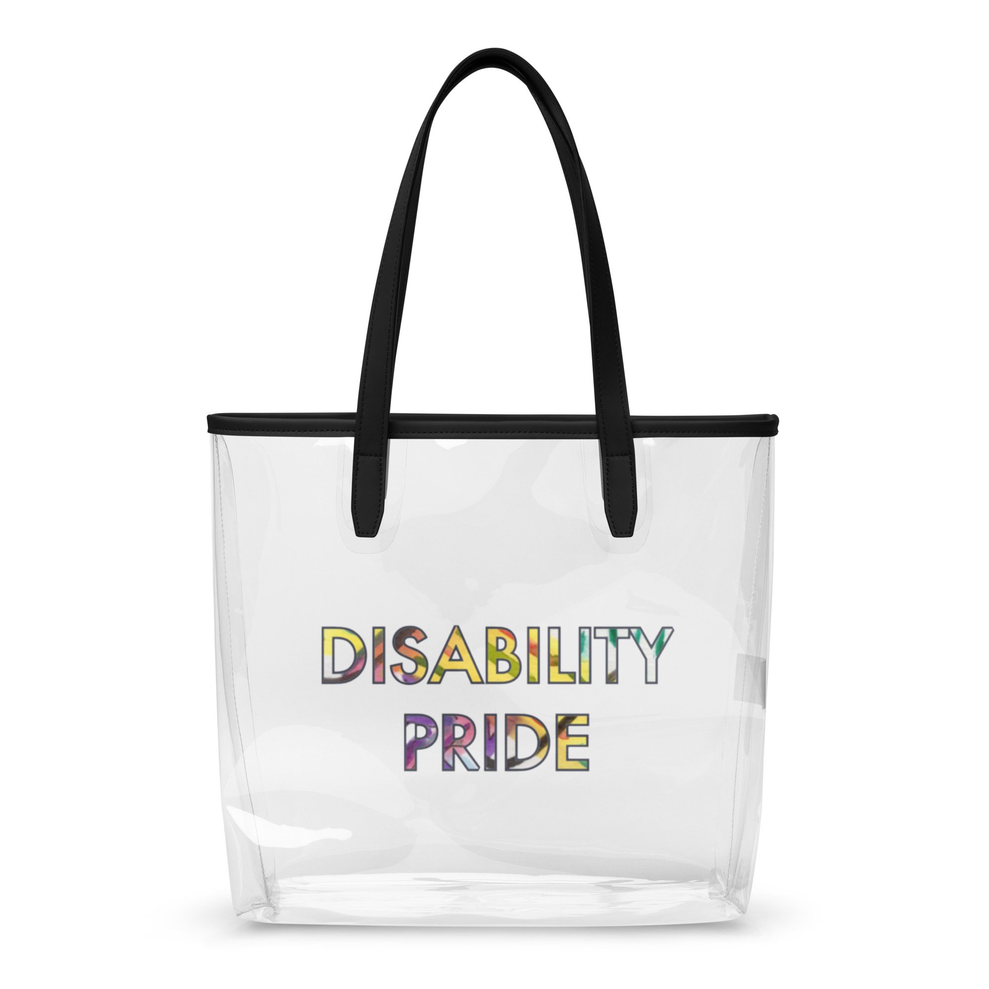 Share your Disability Pride with this clear, chic, and stadium-ready tote. This tote is made for everyday hauling—from concerts to beach days—with a sleek, transparent look and sturdy build.